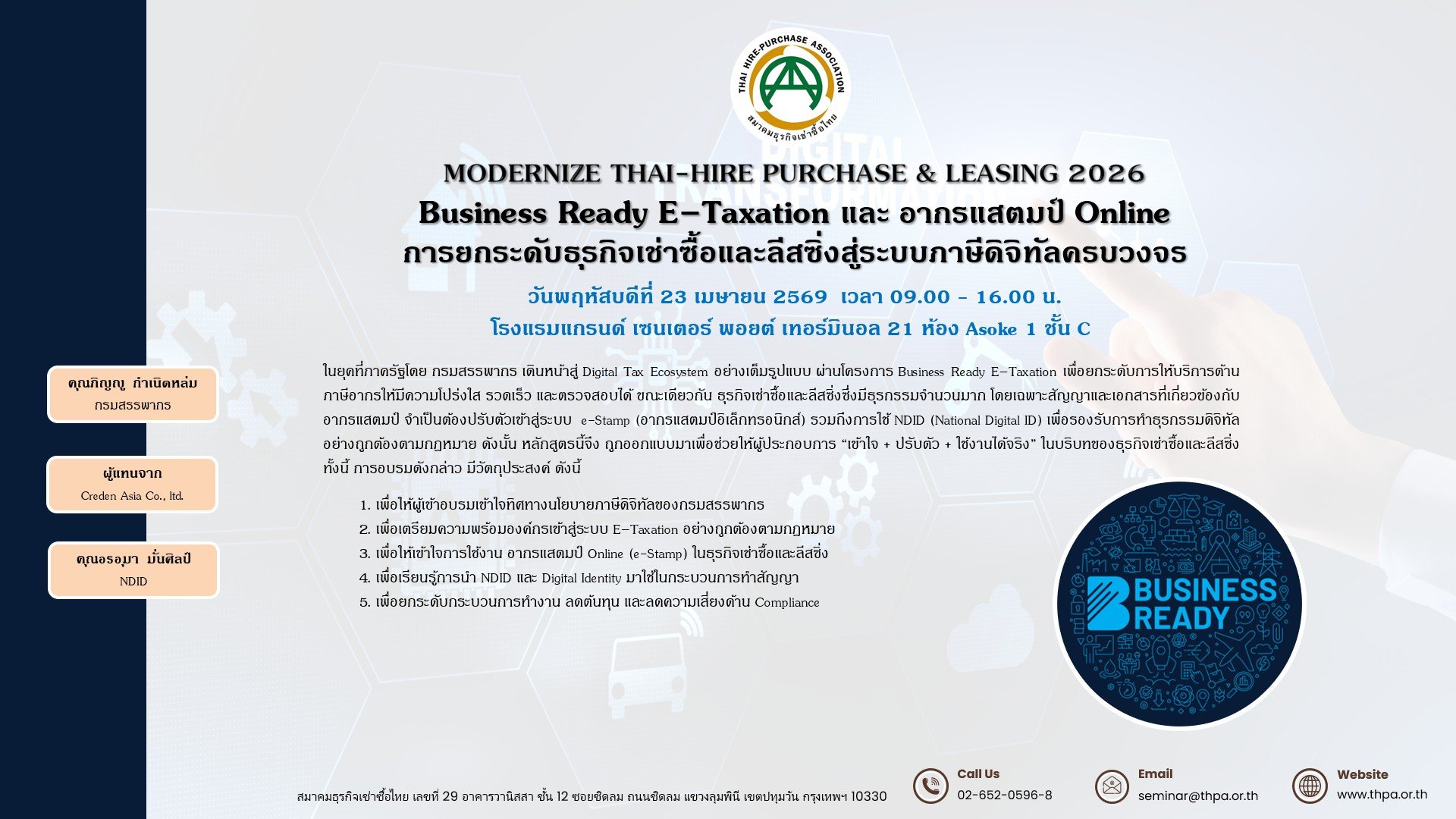 Business Ready E–Taxation และ อากรแสตมป์ Online การยกระดับธุรกิจเช่าซื้อและลีสซิ่งสู่ระบบภาษีดิจิทัลครบวงจร