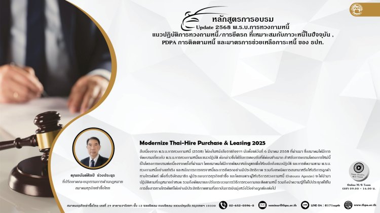 Update 2568 พ.ร.บ.การทวงถามหนี้ แนวปฏิบัติการทวงถามหนี้/การยึดรถ ที่เหมาะสมกับภาวะหนี้ในปัจจุบัน , PDPA การติดตามหนี้ และมาตรการช่วยเหลือภาระหนี้ ของ ธปท.