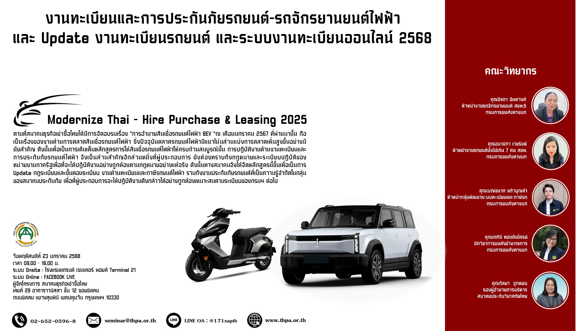 งานทะเบียนและการประกันภัยรถยนต์-รถจักรยานยนต์ไฟฟ้า และ Update งานทะเบียนรถยนต์ และระบบงานทะเบียนออนไลน์ 2568
