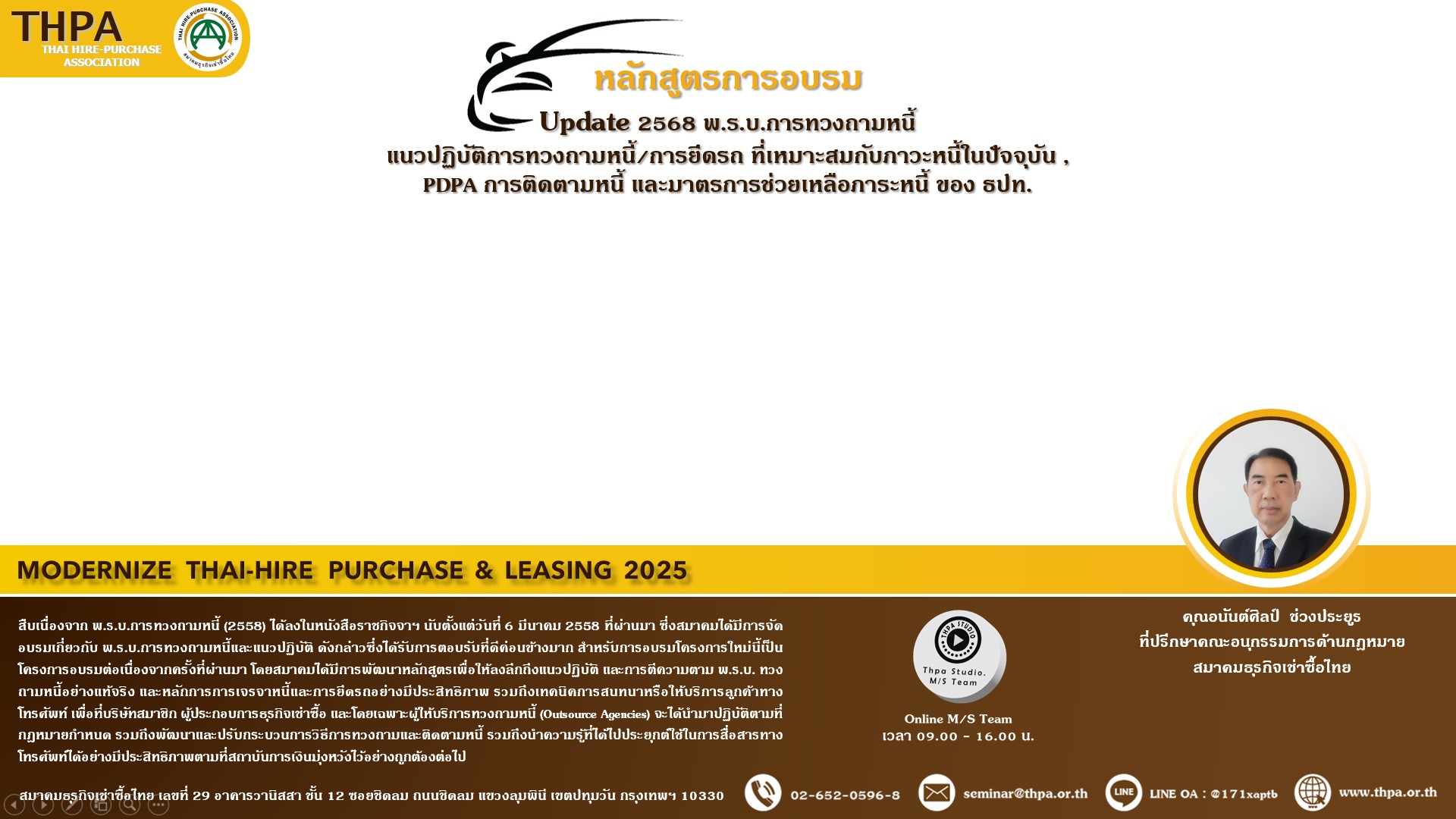 Update 2568 พ.ร.บ.การทวงถามหนี้ แนวปฏิบัติการทวงถามหนี้/การยึดรถ ที่เหมาะสมกับภาวะหนี้ในปัจจุบัน , PDPA การติดตามหนี้ และมาตรการช่วยเหลือภาระหนี้ ของ ธปท.